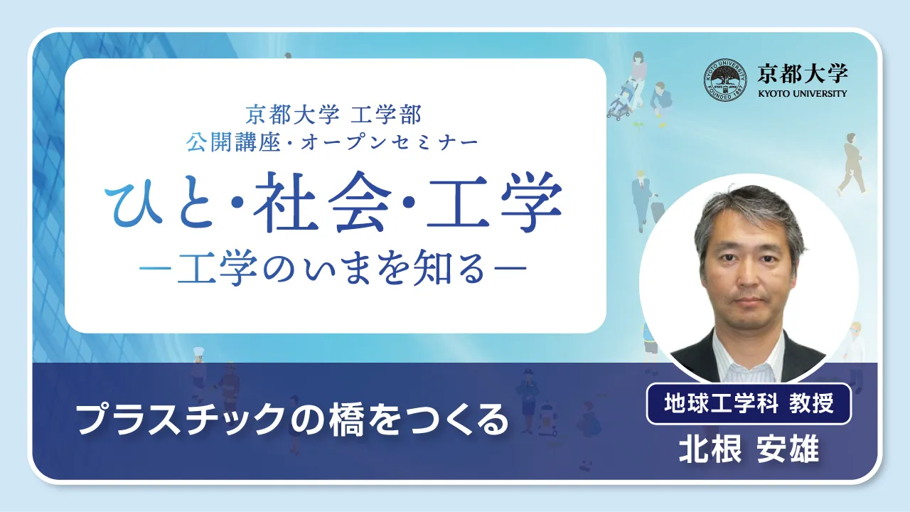 京都大学工学部では、広く一般市民の方々を対象に「工学部公開講座」を開催しています。工学部の教員が、それぞれの専門分野に関する最近の研究事例を紹介・解説します。(2025年10月19日開催)